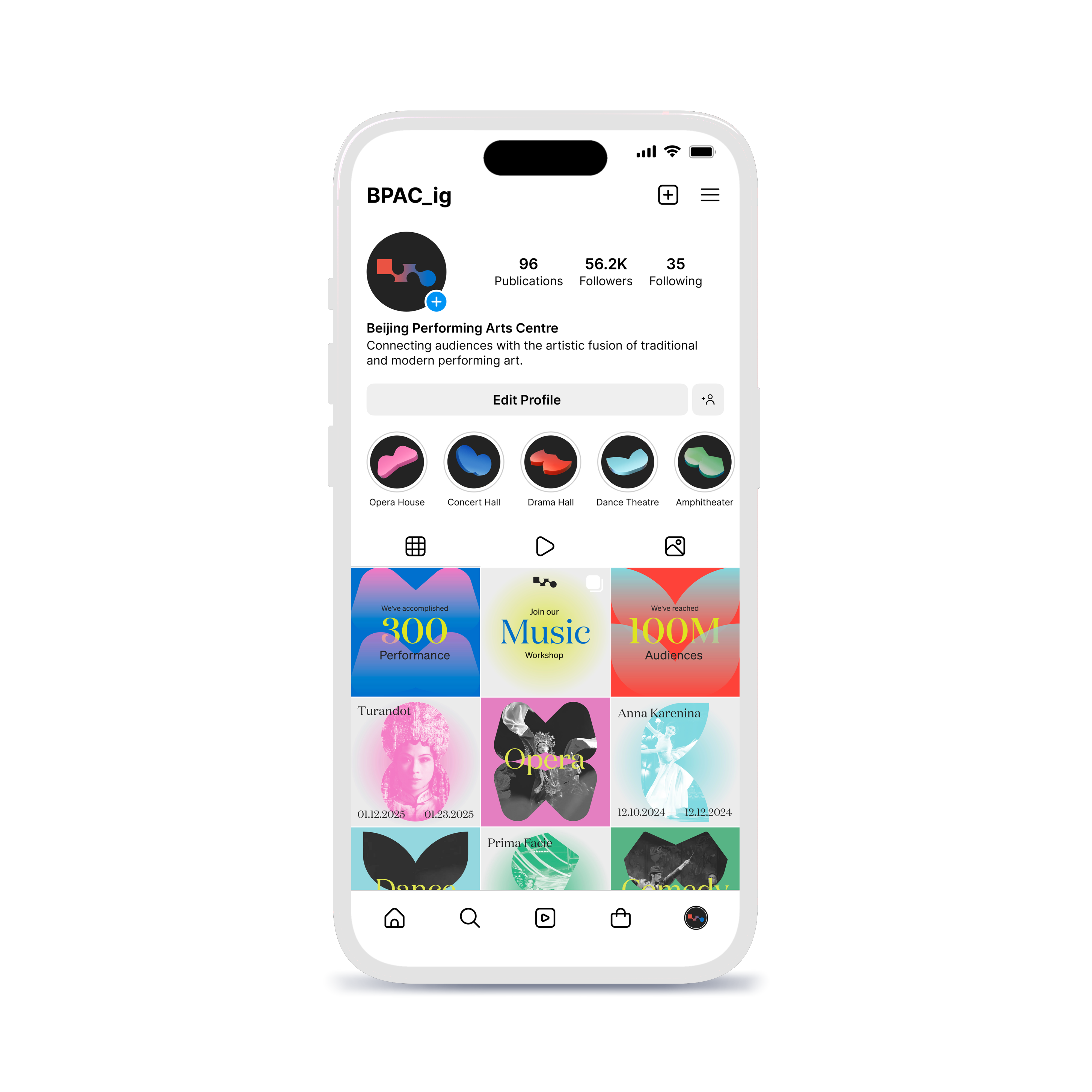 As a cultural and art exchange centre supported by the government, the Beijing Performing Arts Centre has had high expectations since its early days. Thenew brand identity showcase a demonstration of connecting audiences with the artistic fusion of the Beijing Performing Arts Centre. Rooted in tradition but energized by modernity, the Centre is dedicated to introduce a new interpretation of performing arts — an accessible and immersive space for everyone, regardless of social standing or income. Here, we blend the rich heritage of classical performances with avant-garde styles and cutting-edge technology, crafting an experience that speaks to the next generation.