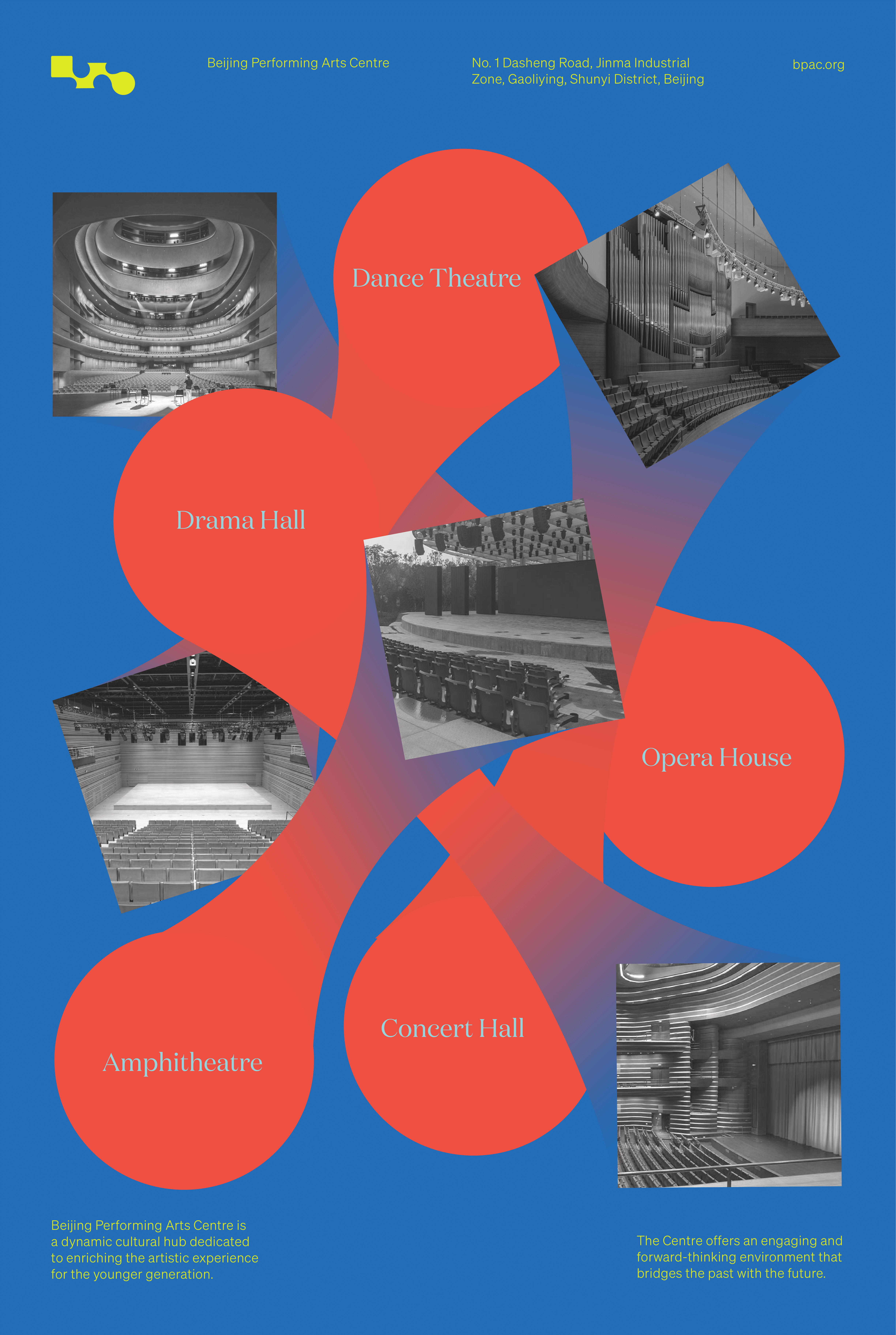 This brand system encompasses two distinct visual design approaches: one dedicated to promoting the Beijing Performing Arts Centre as a whole, and the other tailored to highlight each individual theatre within the centre — namely, the Concert Hall, Drama Hall, Opera House, Dance Theatre, and Amphitheatre.