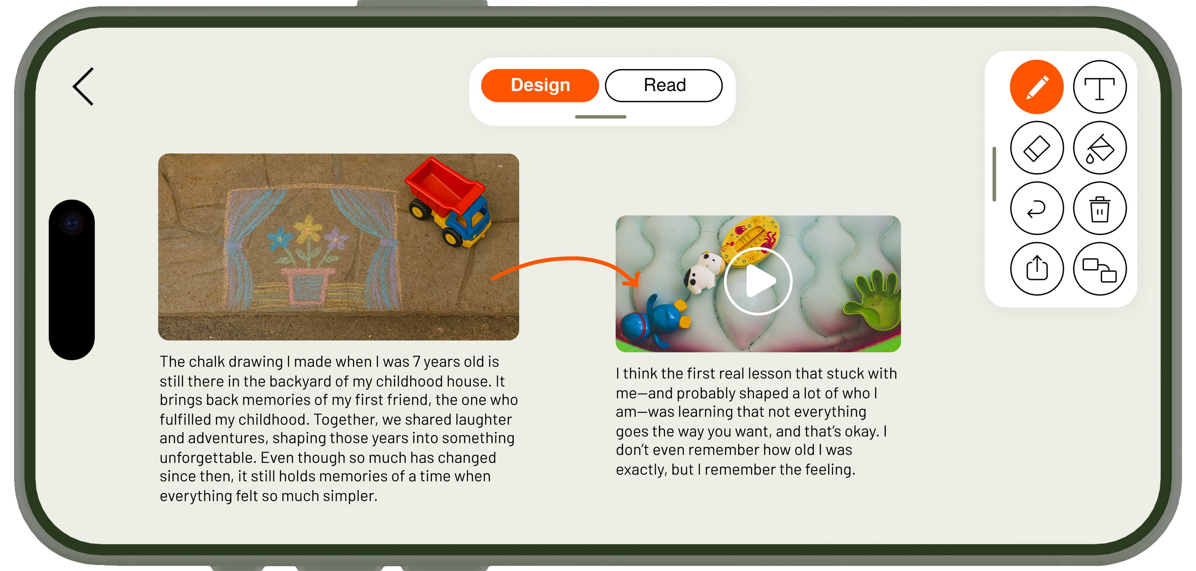 Our mission is to cultivate the documentation of personal reflections by transforming life imprints into interactive autobiographies. We strive to foster self-reflection and deeper connections, enabling users to intentionally preserve meaningful memories to inspire both themselves and their loved ones.