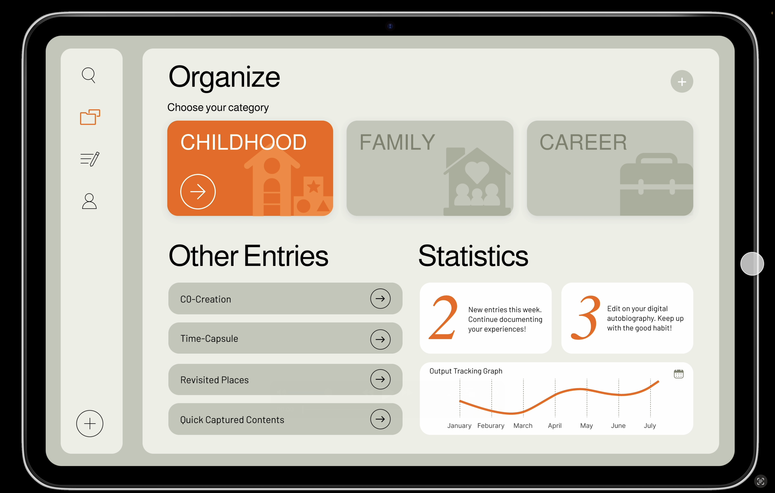 This system is designed for individuals who are busy, seeking to document on their memories and experiences during their life and understanding their identity as an independent individual.