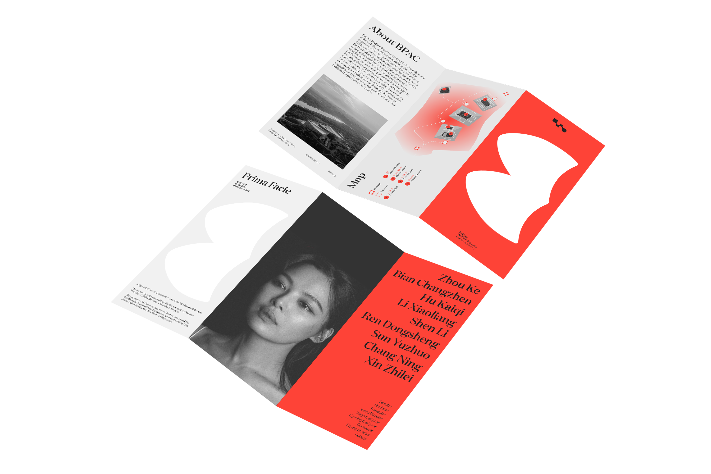 The brochure transforms graphic elements into image masks that reveal the performance image while also functioning as a navigation guide for visitors.