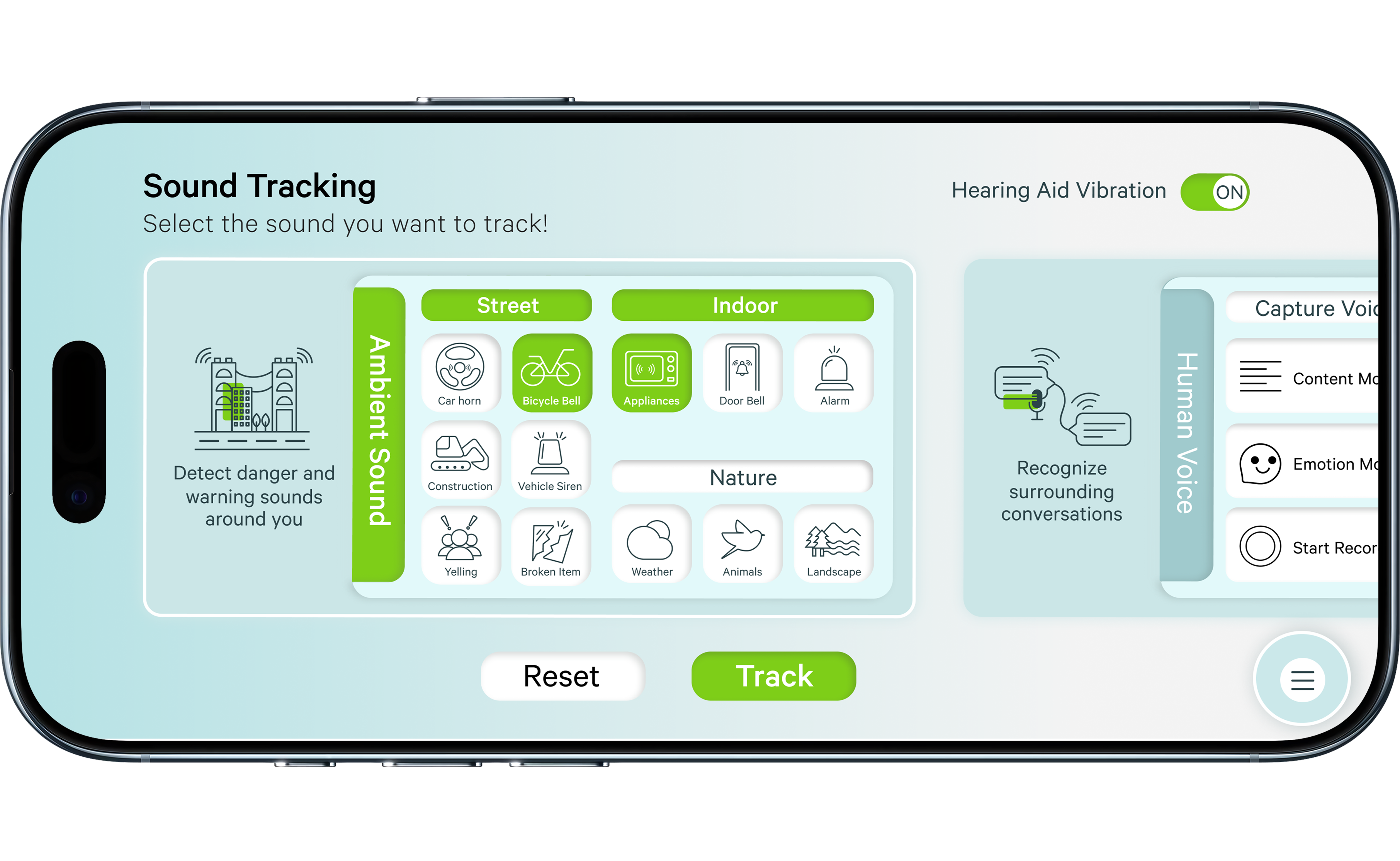 Design an integrated app system and physical product to enhance the daily lives of seniors with presbycusis, leveraging technologies such as voice capture, AI-driven recognition, and intelligent detection.